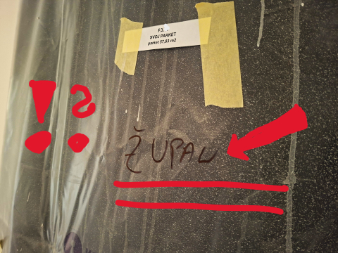 Vrata so bila odprta, v stanovanju /vredno cca 250 000 evrov ali več po analizi nepremičnin v Kranju/ očitno delajo obrtniki. Napis na vratih ne pušča dvoma - ali pač? Nova soseska na Zlatem polju...