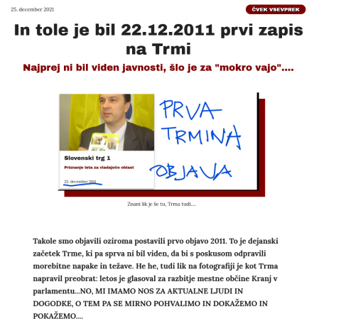Danes praznujemo. Ne samo zato, ker je božič družinski praznik bolj kot verski (pa ne zanikamo izročila). Tudi zato, ker je to praznik Trma.si. Na današnji dan leta 2011 smo "ugledali luč...