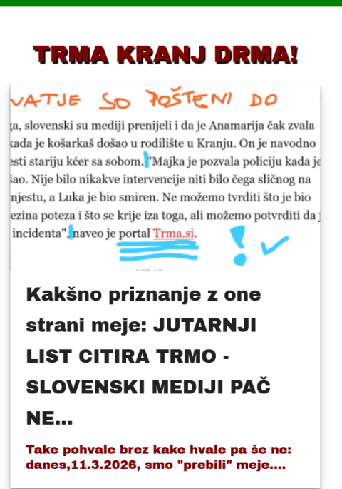 POGLEJTE, KAKO JE LOKALNI MEDIJ IZ KRANJA UGNAL, PREHITEL VSE SVETOVNE MEDIJE IN SEVEDA NA LEP NAČIN OPOZORIL NA DOMAČO MEDIJSKO CENZURO, KI JE TRAJALA DO DANES: JANUAR 2026 NA TRMA .SI Kasneje so...