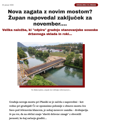 Pa še kako pojasnilo iz občinske stavbe ob priložnosti, ko se štejejo rezultati, projekti in tako dalje... Most naj bi bil zgrajen novembra 2025...zdaj je na vrsti vse ostalo! Upamo, da ne bo tako...