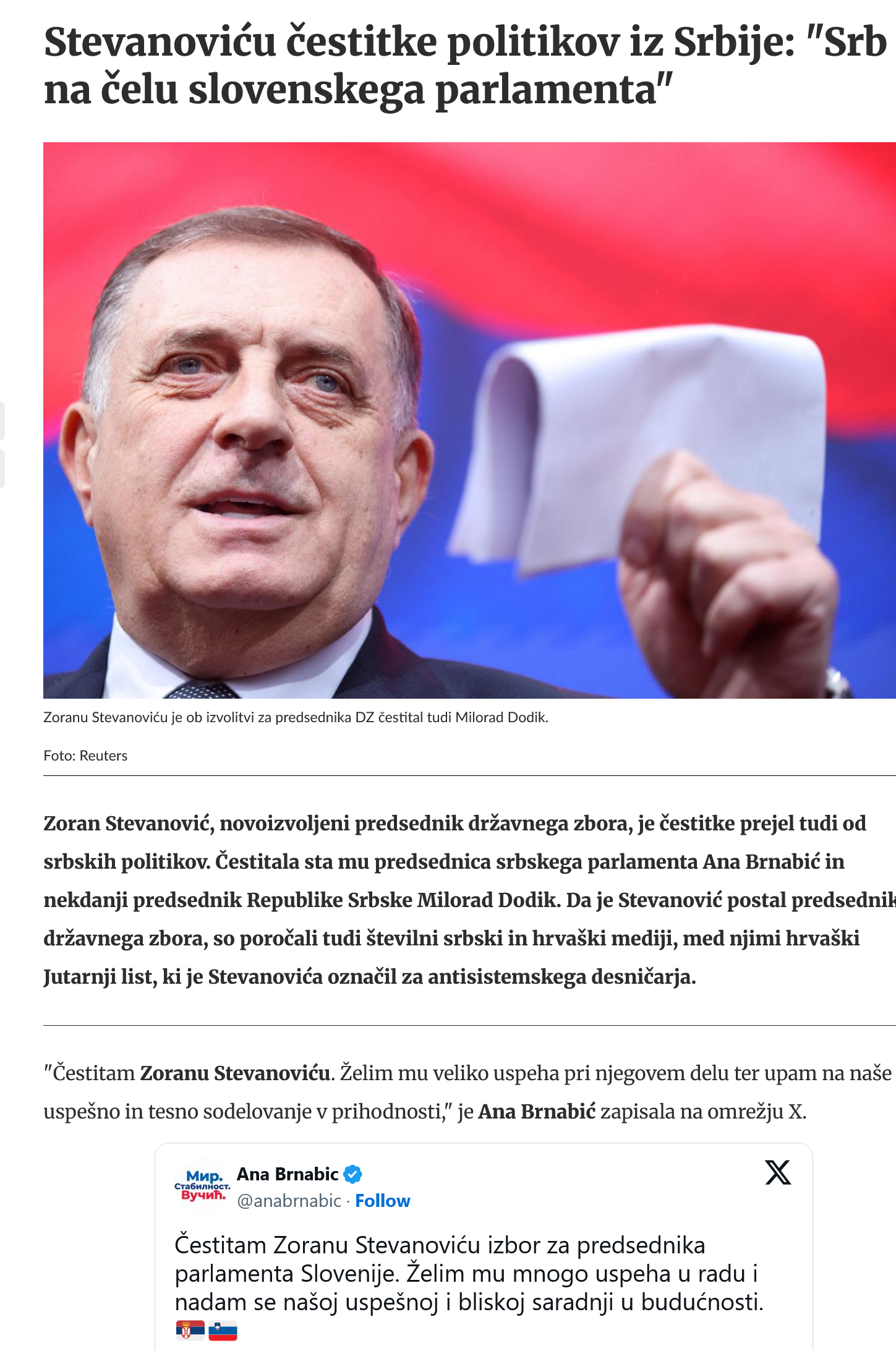 Kranj je doživel največjo politično čast: ZORANE STEVANOVIĆ JE NOVI PREDSEDNIK PARLAMENTA. TREBA JE SPOŠTOVATI VOLJO DEMOKRATIČNO IZVOLJENE OBLASTI IN ČESTITATI POLITIKU, KI JE NEKAJ ČASA GRMEL, DA...