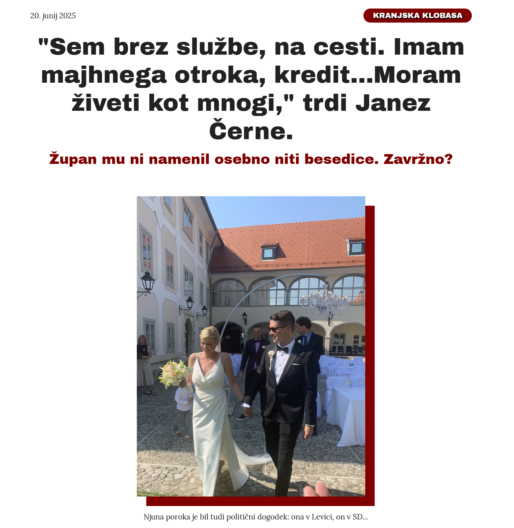 Brez pretiravanja: Janez Černe je kot podžupan "podpiral tri vogale občine" kot rečejo bivši sodelavci o prvem operativcu, ki je postal politična žrtev župana, ki ni mogel prenesti, da mu podžupan ne sledi slepo pri nastavljanju nove direktorice v gledališče....Pa je ključno vlogo odigral mestni svet in Rakovčev izbor zrušil, nato je Rakovec zrušil podžupana... politika pač...Kako se je v času, ko je bil ob službo znašel Černe, ni točno znano - bil pa je kativen kot samostojni podjetnik. ZA POVRH SE JE RAZVESELIL S SOPROGO ANO TUDI SINA NEDAVNO - DRUŽINA IMA ZDAJ ŠTIR ČLANE IN SEVEDA ČESTITAMO MALO POZNO, A IZ SRCA....