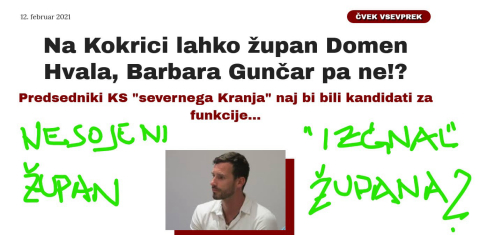 Govekar v Kranju, Šenk pa v novi občini....