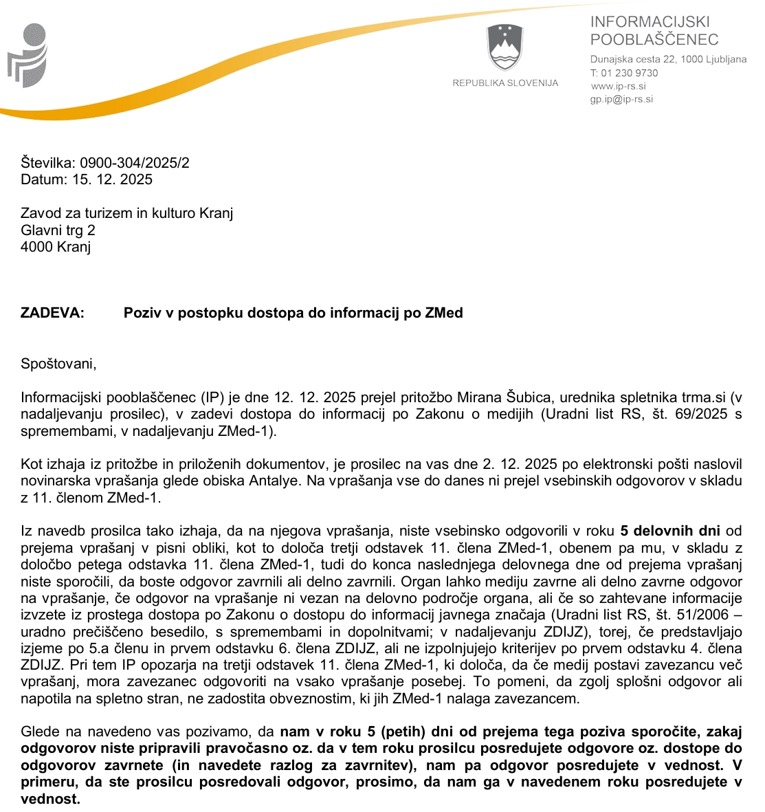 Rok za predložitev dokazil o potovanju še ni potekel, rok za odgovor pa je: zato je Klemen Malovrh v relativno kratkem času že drugič doživel opomin informacijske pooblaščenke....