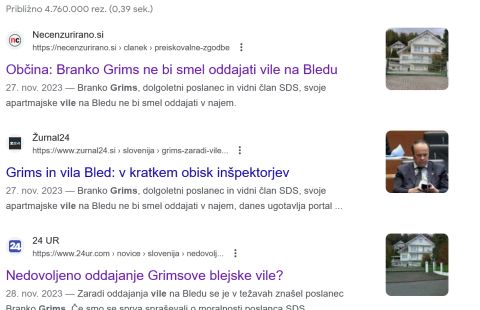 Portal Necenzurirano je opozoril konce lasnkega leta na posle z oddajanjem poslanca Branka Grimsa. Oddajal je svojo nepremičnino na Bledu, a je OBČINA BLED JASNO OPOZORILA NA MOŽNE KRŠITVE IN ŽUPAN TONI MEŽAN JE TERJAL POSTOPEK ZA PREVERITEV NAVEDB V MEDIJIH OD MEDOBČINSKEGA INŠPEKTORATA KAMOR SPADA TUDI BLED.