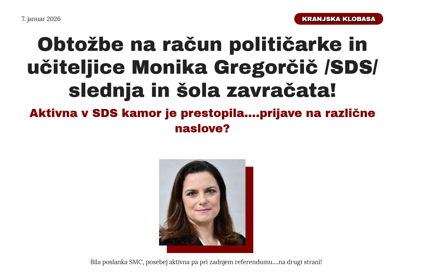 in kdo od Kranjčanov je ostal na ravni "eksotike" oziroma zgolj statista na volilnem odr? KAREL ERJAVEC je skušal obuditi politično kariero in za take izide zlobneži rečejo, da "ni dobil niti glasov širše žlahte"....pa je podobno z Iztokom Puričem pri pogorelem Prerodu! Ne pozabimo, da smo gorenjski volivci in volivke rekli "ne" tudi Pavlu Ruparju, pa uvoženemu Počivalšku, posebno poglavje pa je polom kandidature "vzhajajoče zvezde SDS" MONIKE GREGORĆIČ, KI JE CELO MED PRVIMI IZ SDS DAJALA IZJAVE V TELEVIZIJSKE KAMERE NESPOREDNO PO VOLITVAH, POTEM PA HLADEN TUŠ...NI EDINA!