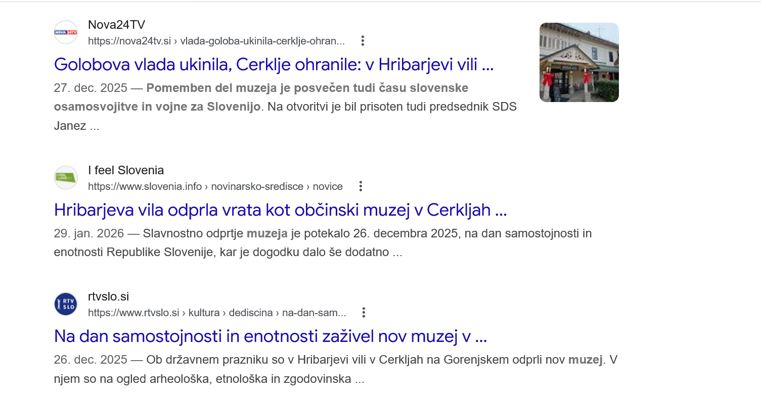 S prijateljem sva sklenila videti zbirke v Hribarjevi hiši - enem najlepših objektov na Gorenjskem. Kupila in prenovila ga je občina Cerklje (z denarjem davkoplačevalcev...). Otvoritev je bila decembra in zbrali so se "lastniki osamosvojitve" (izraz je v navednicah in je ilustrativen). Ni manjkalo govorov in zadovoljstva...a danes je 24.3., torej TRI MESECE KASNEJE IN NA SPLETNI STRANI MUZEJA NAJDETE TOLE: