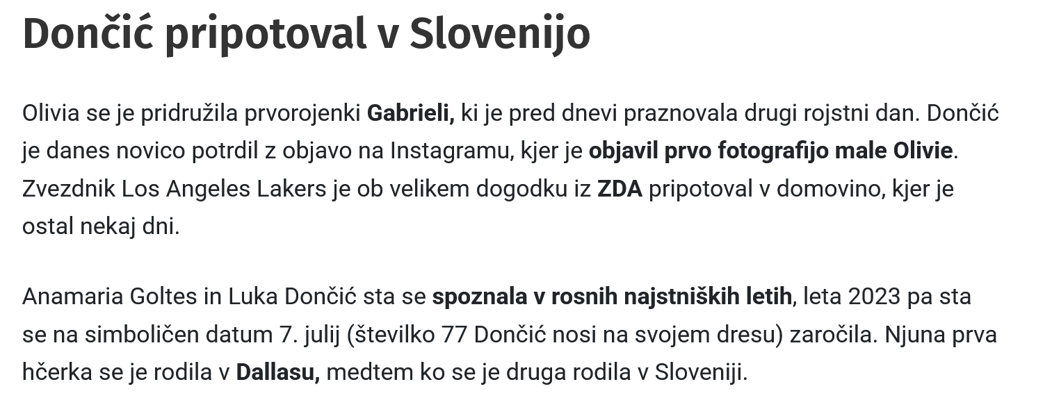Če o Luki Dončiću mediji vsak dan prinašajo "novice" iz zasebnega življenja (od števila avtov, ki jih ima ipd.), incident iz kranjske porodnišnice ni dobil medijskega odziva, zato pa toliko veš šušljanja ipd. Trma.si je edini medij, ki je preveril, ali se je incident zgodil in dobil ustrezno potrditev. To zadošča za pojasnilo, da mi ne skrivamo ali ravnamo z objavami v korist kogarkoli. Kranjska porodnišnica je javna ustanova kjer pa skrbno čuvajo zasebnost svojih pacientk. To pa ne pomeni, da je mogoče skriti ali prikriti odmevne dogodke javnih osebnosti kar Luka Dončić in Aanamarijo Goltes sta nesporno. Dokaz za to je objava z dne 16.1.2026 na spletu, ki je taka: