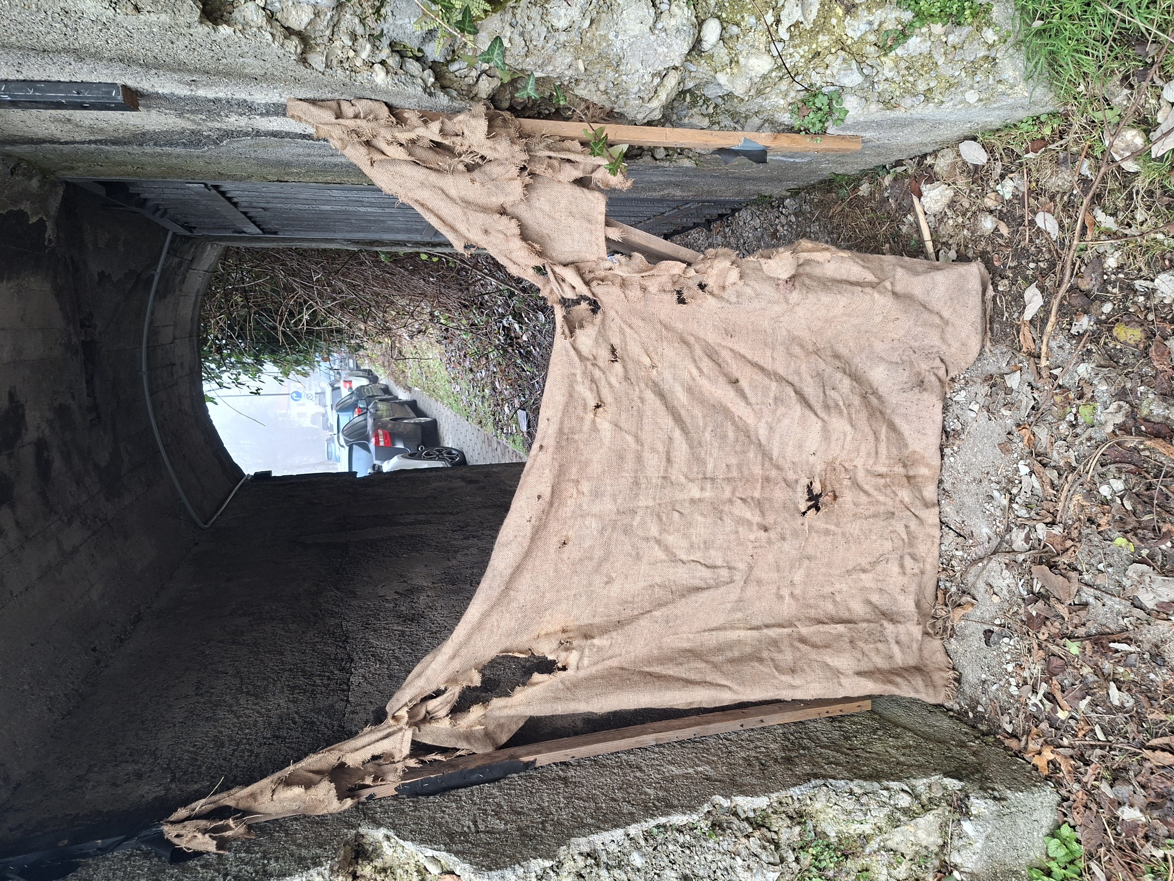 Danes smo bili zopet tam. Zgroženi občani so se namreč zbirali v trumah ob dokazu nezaslišanega dejanja zoper to oblast! Instalacije ni več, strganega žaklja ni več in plakat nas ne vabi več na dogodek, ki je že bil ampak na tistega, ki še bo in vsebuje kajpak tudi "županov koncert", ki ga plačamo mi in ga bo že tretjič (kar je seveda naključje....) uprizorila pevka, ki je sicer pela tudi ob občinski slovesnosti ob občinskem prazniku pred dnevi! Ljudje ne morejo verjeti, da je nekdo umaknil, odstranil ali pa - zašil to umetnino, to posvetitev stanju mesta, to demonstracijo oblasti in njenega delovanja. Pritekle so celo solze besa in nemoči, obupa in zgražanja nad tem, da zdaj skozi to luknjo ne buljimo več v strgan žakelj ipd. - ampak v svetlo prihodnost. Morda pa se nadaljuje umetniški pristop v mestu kjer je nekoč pesnik France po jarkih polegal in mojstrovine pisal? IN RES: RAZLAGA JE LJUDSKA, A NA MESTU. ZDAJ SE SKOZI LUKNJO VIDI POT. TISTA NAVZGOR, PROTI NOVI AVTOBUSNI POSTAJI, HOKEJSKI IN KONCERTNI DVORANI, PROTI VSEM PRIDOBITVAM ISTE OBLASTI, KI NAM TAKO PRONICLJIVO DOKAZUJE, DA POT VSEKAKOR VODI DO OBČINE IN POTEM NAPREJ ... V NESKONČNO RADOST! PREDLOG ZA PREŠERNOVO NAGRADO ZA NASLEDNJE LETO JE ŽE NAPISAN IN ODPOSLAN: TAKA JE VOLHA LJUDSTVA, DA NAGRADIMO TA DOSEŽEK, TO FANTASTIČNO INSTALACIJO, KI JE S SVOJIM PRENEHANJEM DEJANSKO OSMISLILA NAŠO STVARNOST. PREJELI PA SMO TUDI RAZLAGO VRAT V ZIDU, KI SPOMINJAJO NA JEČO: TAM NEKJE V ROVIH BOMO PRISTALI MI. TO BO NAŠA USODA, KER NISMO TAKOJ PREPOZNALI GENIJA, KI NI SAMO VAGABUND IN GURMAN AMPAK ŠE MARSIKAJ. ZATISTIMI ZAPAHNJENIMI VRATI BO TROHNEL VSAK, KI NE BO DOJEL IN SPREJEL MOJSTRSKEGA POČETJA TANDEMA, KI JE KRIV IN ODGOVOREN ZA VSE TO. /opomba: slovita Marina Abramović je ob seznanitvi s tem projektom in instalacijo baje takoj prekinila svoje delovanje s stavkom: "Ničesar več nimam in ne morem povedati, ker ta produkt srečnega mesta presega vse!"/ Nekateri (morda pod vtisom kakih posledic veselega decembra/ pa prisegajo, da se je v zadnjem času Prešeren dvakrat obrnil v ....no, saj veste kje/
