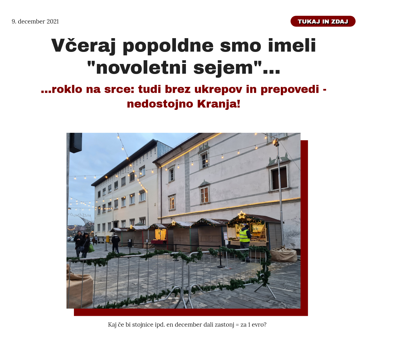 Tole zgoraj je kranjski novoletni sejem. Tak skoraj kot lani in prej. S tem sporočilom: