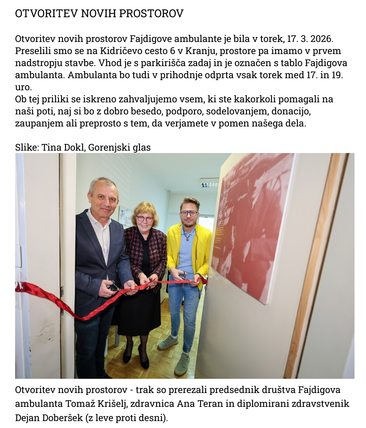 DRUŠTVO FAJDIGOVA AMBULANTA SE NAM JE PREDSTAVILO: