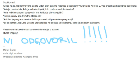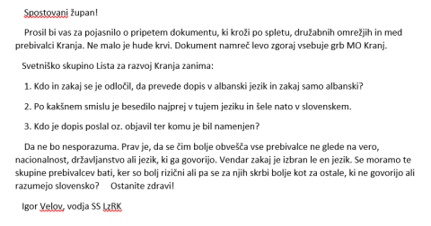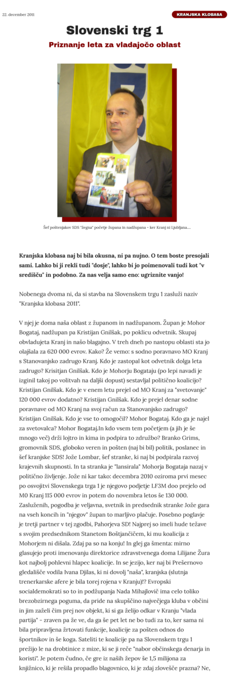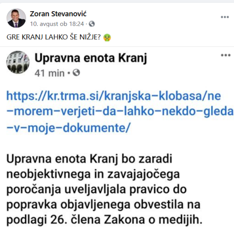 Ko posamičen dogodek pokaže vzorec delovanja sedanje oblasti v Kranju.