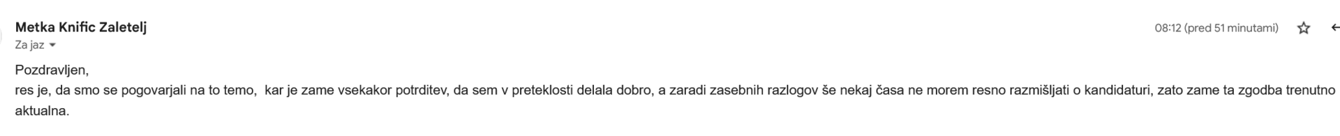 Tak pa je odgovor Kranjčanke in prve državne uradnice pri nas o kandidaturi...