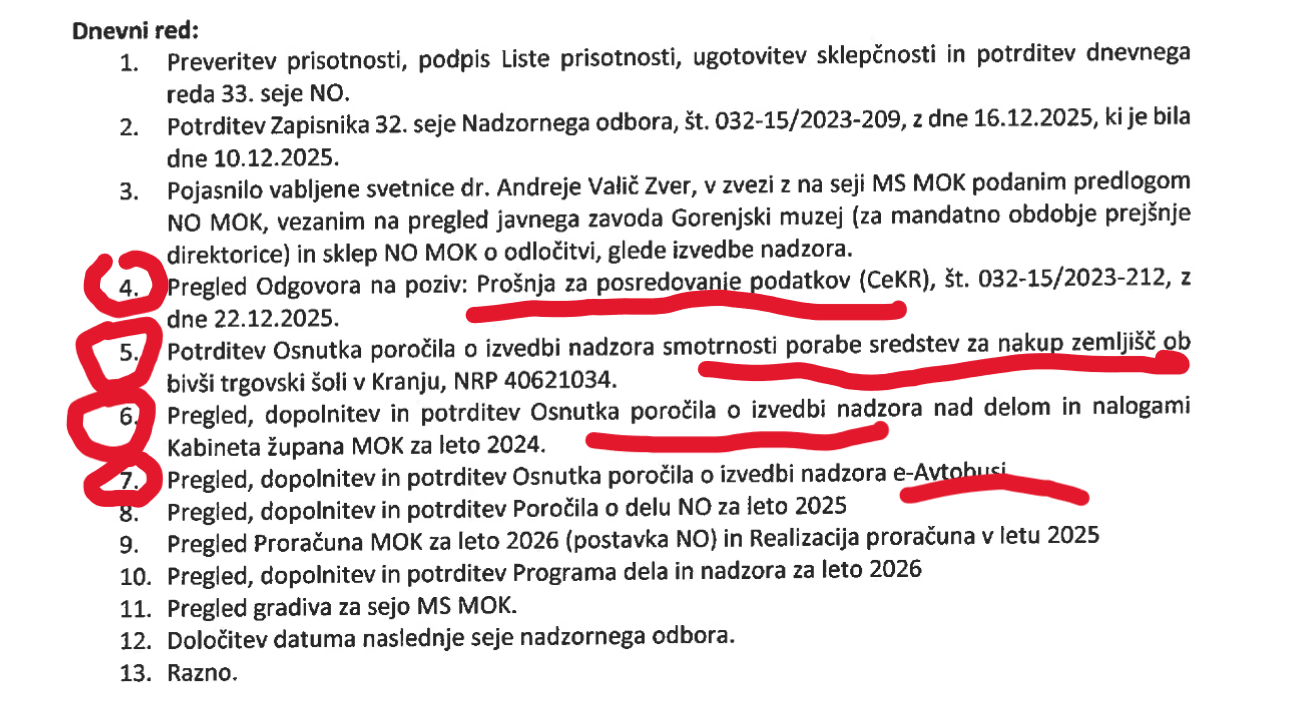 Nadzorni odbor vsake občine je tisti organ, ki naj bi gledal pod prste županu, varoval javni interes in javni denar. Bili smo opozorjeni, da se v tem primeru v Kranju nahaja "brezzobi tiger", ki komaj kaj zmore učinkovito "ugrizniti"! Res? No, člani prejemajo kar spoštljive sejnine oziroma nadomestila, učinki pa...? DO KONCA MANDATA NI VEČ DOLGO, NO MO KRANJ PA RES PRESENETLJIVO SVOJ URNIK DELA IN VSEBINO "USKLAJUJE" ZA NAŠIMI ZAPISI OZIROMA VSEBINAMI: OD CEKR KARTICE DO EAVTOBUSOV IN ZDAJ JE ŠE KAKO AKTUALNA TUDI TRGOVSKA ŠOLA OZIROMA VSE KAR ZRAVEN SODI....Da so povezave naključne, je povsem možno - ampak: dnevni red ene zadnjih sej nadzornega odbora ne pušča dvomov v to, da smo dejansko mi tisti, ki opozarjamo - IN TO NAM JE V VELIKO ZADOVOLJSTVO. KAJTI MEDIJ RES NIČESAR NE MORE REŠITI, ZATO PA LAHKO SPODBUDI REŠITVE. IN ČE SE BO DO NJIH DOKOPAL PO VSEJ TEJ PROCEDURI TUDI NAJBOLJ ODGOVOREN NADZORNI ORGAN MOK, TOLIKO BOLJE....