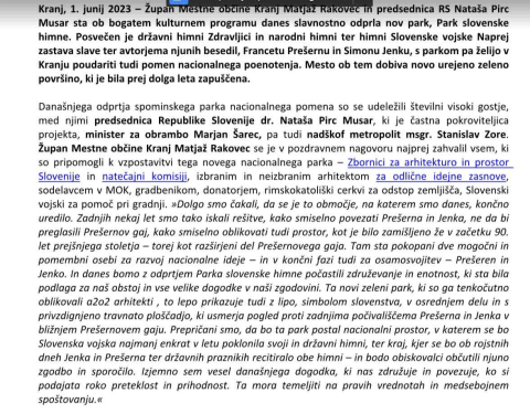 TOLE PA PIŠE V GRADIVU. SRAMOTA ZA MO KRANJ, DA V NJEM PIŠE, KDO STA AVTORJA HIMNE....NAM PA V ODGOVORU SOLIJO PAMET? TOLE MI PLAČUJEMO, DA SE RAZUMEMO. IN TO JE JASNO OPREDELIL GOSPOD GOBEC V SVOJEM PISMU, KI JE NA MO KRANJ PRIROMALO "OD OBČANA" KAR JE MILO REČENO SPRENEVEDANJE. NAM JE ZDAJ NAMREČ POVSEM JASNO, KDO JE POSLAL IN KDAJ DOPIS, KI JE RAZGALIL POČETJE ODGOVORNIH NA OBČINI. IN TO NI "OBČAN" AMPAK...NITI NI TAKO POMEMBNO KOT JE POMEMBNO TO, DA NA ARGUMENTE IZ NJEGOVEGA DOPISA NISO ODGOVORILI. /se nadaljuje in je res šokantno/