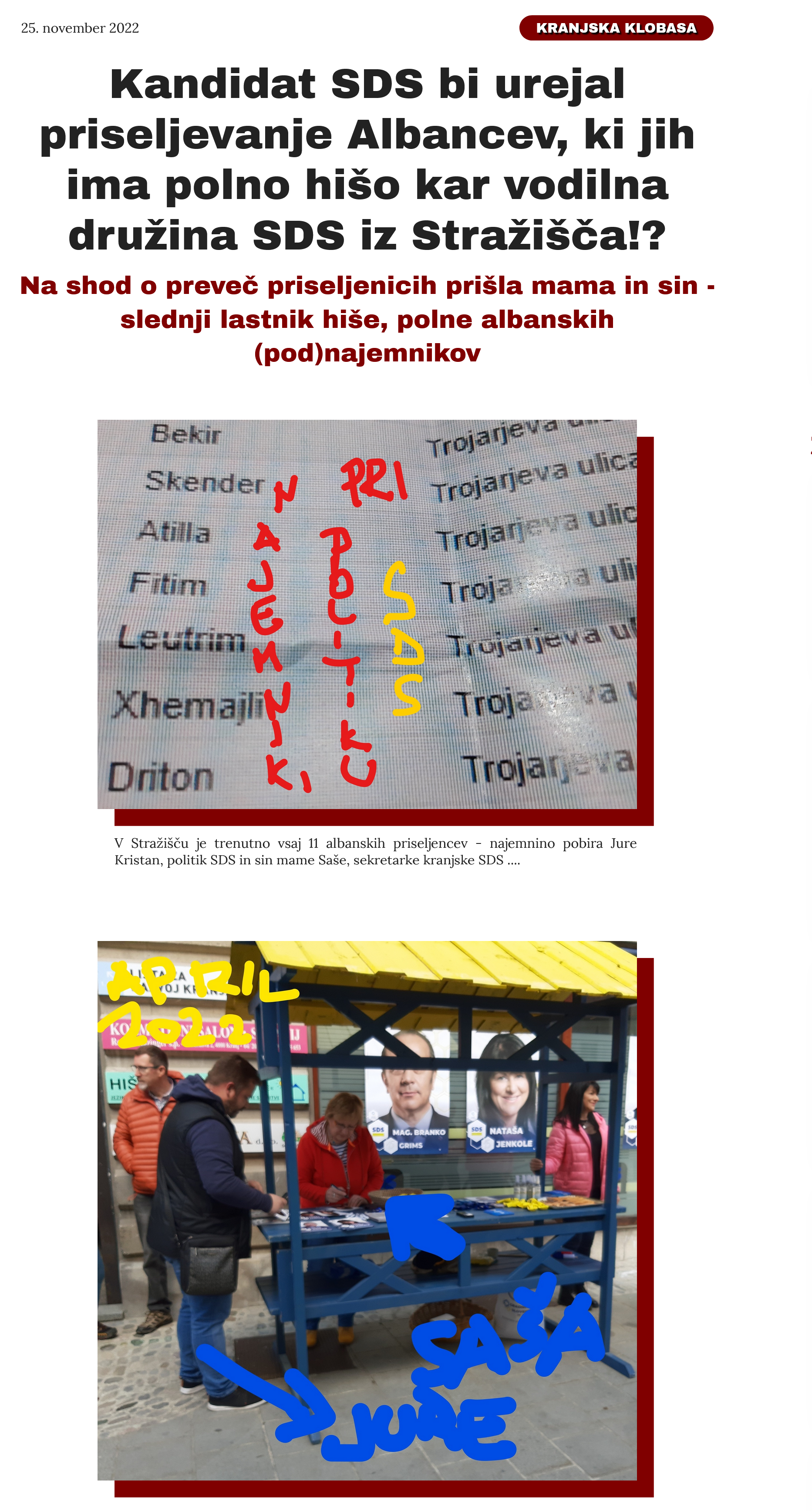 *v nesojenem boju treh družin je izvisel neuradni kandidat JURE KRISTAN, ki tudi s podporo mame SAŠE KRISTAN (dosedanje sekretarke SDS Kr) ni prišel v ospredje /to so neuradne informacije...ker uradno od SDS dobimo redko ali nikoli odziv/