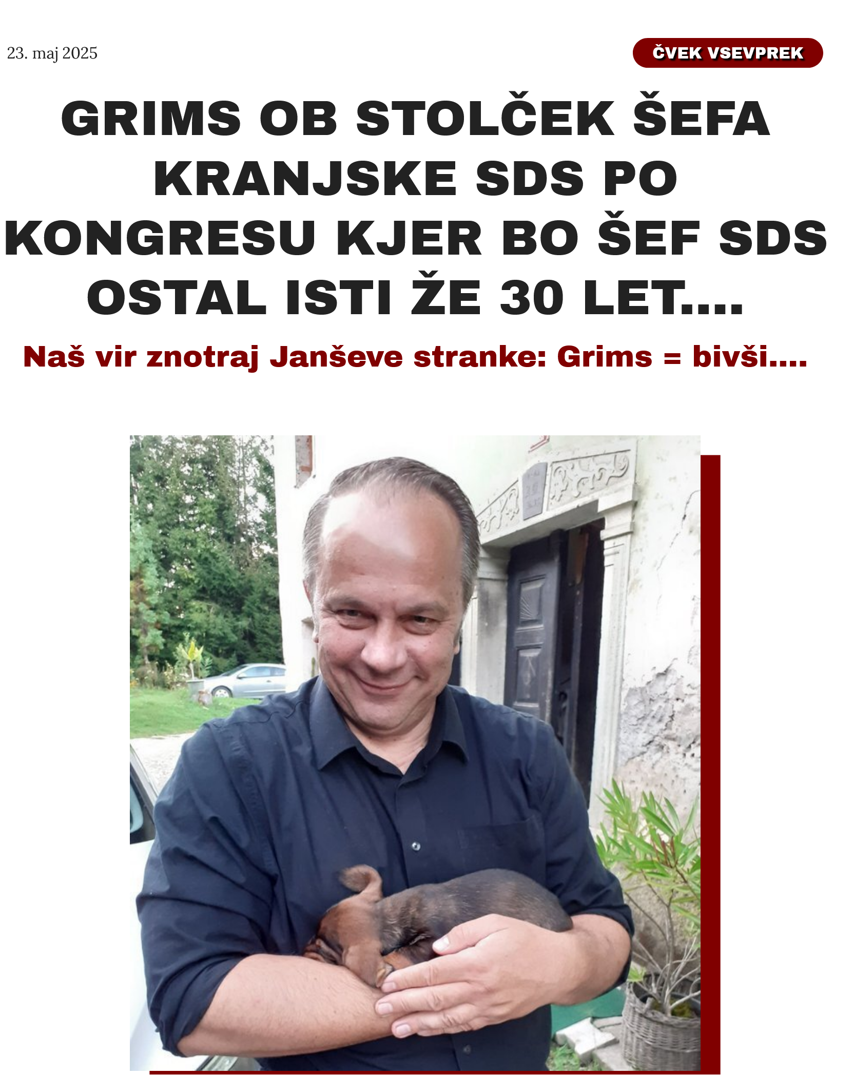 *Branko Grims je "detroniziran" kot desetletja trajajoči šef kranjske SDS ...tudi v glavnih organih stranke v Ljubljani ga ni več....Njegov "politični parket" je v Bruslju.....a mi smo že maja napovedali:
