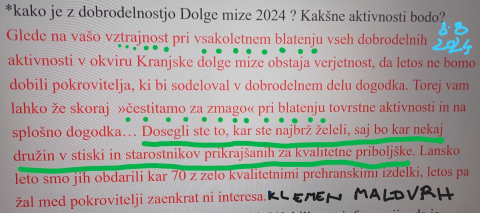 Dne 12.9. (na dan nesojene prestavitve DOLGE MIZE 2024...) je Klemen Malovrh poslal tale odgovor: