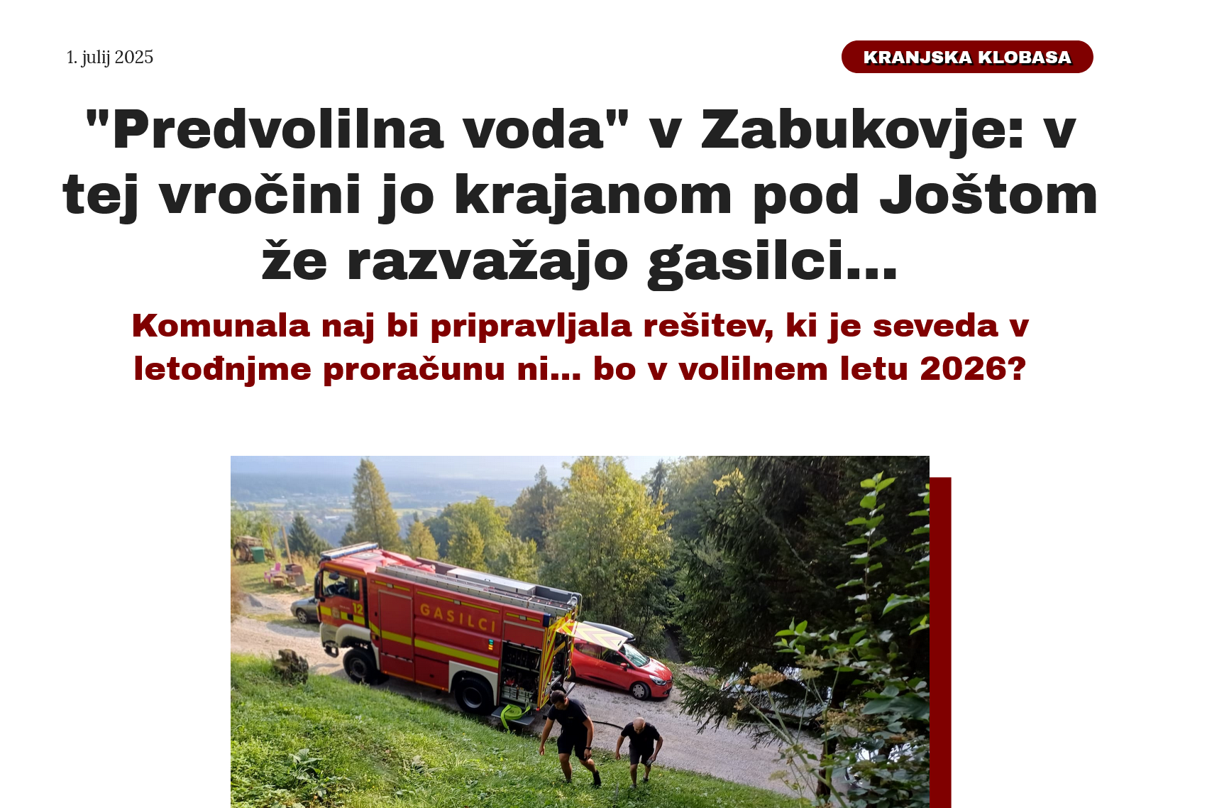 To je Kranj kjer se naši vodilni radi pohvalijo, kako uspešni so. V Zabukovju pa mora živijo "drugorazredni občani", ki prosijo za kubik peska pa vodovod pa....Se še spomnite poletnih prizorov, ko jim dovažajo vodo?