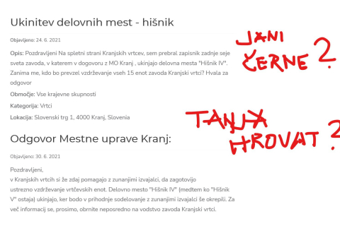 Prilagamo nekaj zapisov o tem, kako so iz vrtcev "spodili" hišnike in dobili najcenejšo ponudbo podjetja Flora Sport kot nadomestilo. Isto podjetje je v sodnem sporu z MO Kranj zaradi predragega vzdrževanja zelenic. Zdaj je dobilo kot najcenejši ponudnik možnost 500 000 evrov vrednega posla. S podjetjem neuradno povezujejo mestnega politika, ki je tudi v svetu zavoda Kranjski vrtci. A to so ugibanja, mi pa prilagamo nekaj dejstev o tem, kako je potekal "scenarij" odstranitve hišnikov. DA NE BO POMOTE: MI NISMO ODVETNIKI TISTIH, KI SO MORALI IZ VRTCEV, SAMO POTEK DOGODKOV VZBUJA POMISLEKE, DA JE ŠLO ZA VNAPREJ DOGOVORJENO AKCIJO.