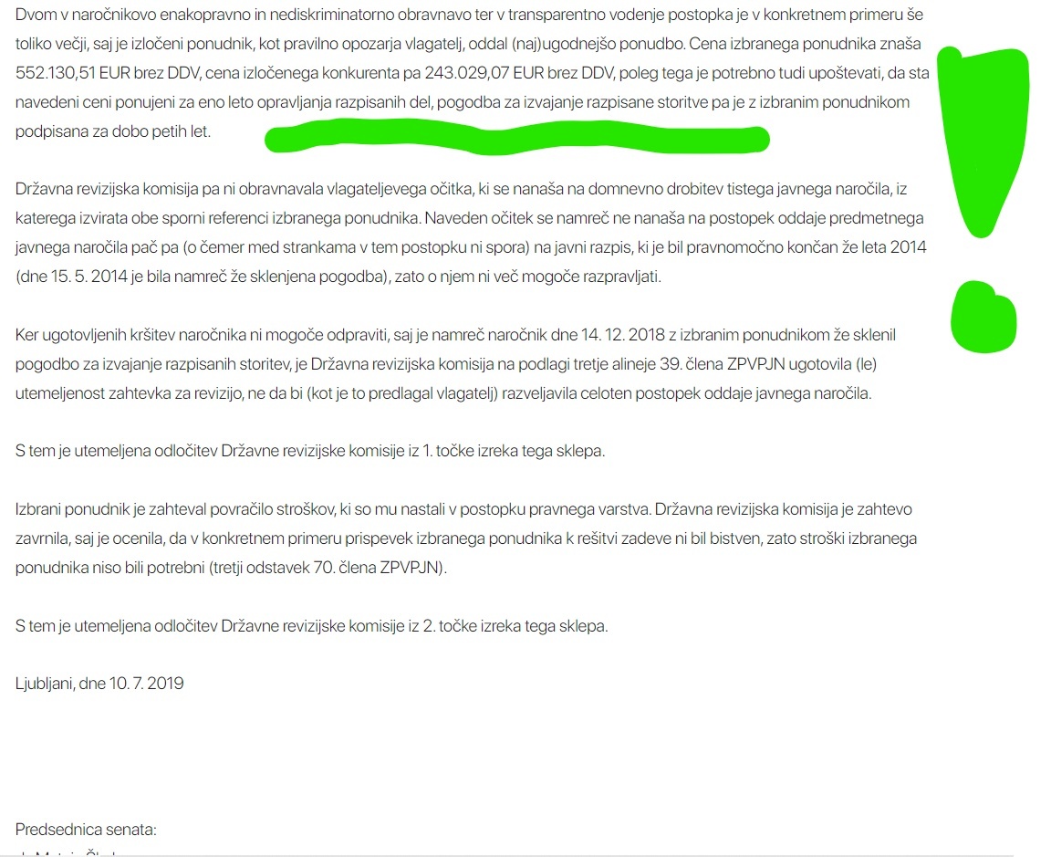 DRŽAVNA REVIZIJA JE ODLOČILA PRAVNOMOČNO, DA JE ZAHTEVEK ZA REVIZIJO, KI GA JE VLOŽILO MINISTRSTVO, UTEMELJEN IN SEVEDA MARSIKAJ ZAPISALA V SVOJEM SKLEPU.