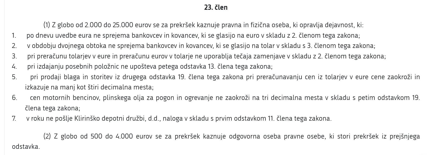 Tržni inšpektorat RS je prejel vaše zaprosilo za posredovanje dodatnih pojasnil glede inšpekcijskega postopka zagotavljanja plačila storitev avtobusnega prevoza v Mestni občini Kranj z gotovino, to je eurobankovci in eurokovanci. Trdite, da je ukrepe v zvezi z onemogočanjem uporabe gotovine dokazano uvedla MO Kranj preko koncesionarja. Zanima vas, ali je MO Kranj glede na to in druge okoliščine (nedostopnost kartice Cekr na ustrezno dovolj mestih) deležna kakršnegakoli ukrepa oziroma postopka z vaše strani za katerokoli sporno aktivnost in ali je postopek zoper MOK zaključen. Tržni inšpektorat RS podrobneje pojasnjuje, da ZUE jasno določa, da je za storitev prekrška po prvi točki prvega odstavka 23. člena odgovorna pravna ali fizična oseba, ki opravlja dejavnost, ki po dnevu uvedbe evra ne sprejema evro bankovcev in kovancev. Skladno z ugotovitvami imenovanega inšpektorata je ponudnik avtobusnih prevozov odgovoren za izvajanje vseh nalog, povezanih z izvajanjem gospodarske javne službe mestnih linijskih prevozov v MO Kranj, kar vključuje tudi zagotavljanje vseh predpisanih načinov plačila prevoza uporabnikom mestnih prevozov. Torej izvajalec mestnih linijskih prevozov ima dolžnost, da naloge izvaja skladno s pogodbo in skladno s hierarhično višjimi predpisi, tj. zakoni in evropskim pravom, vključno z zagotavljanjem plačil z bankovci in kovanci skladno z ZUE. Glede na to da smo vam v predhodnem dopisu že sporočili, da se je zoper dejanskega ponudnika avtobusnih prevozov izvedel inšpekcijski postopek, v katerem so bile ugotovljene nepravilnosti iz naslova določb ZUE, se je zoper tega zavezanca ustrezno prekrškovno ukrepalo. Ker odločitev prekrškovnega organa še ni pravnomočna, ima kršitelj zoper odločbo pravico do vložitve pravnega sredstva.