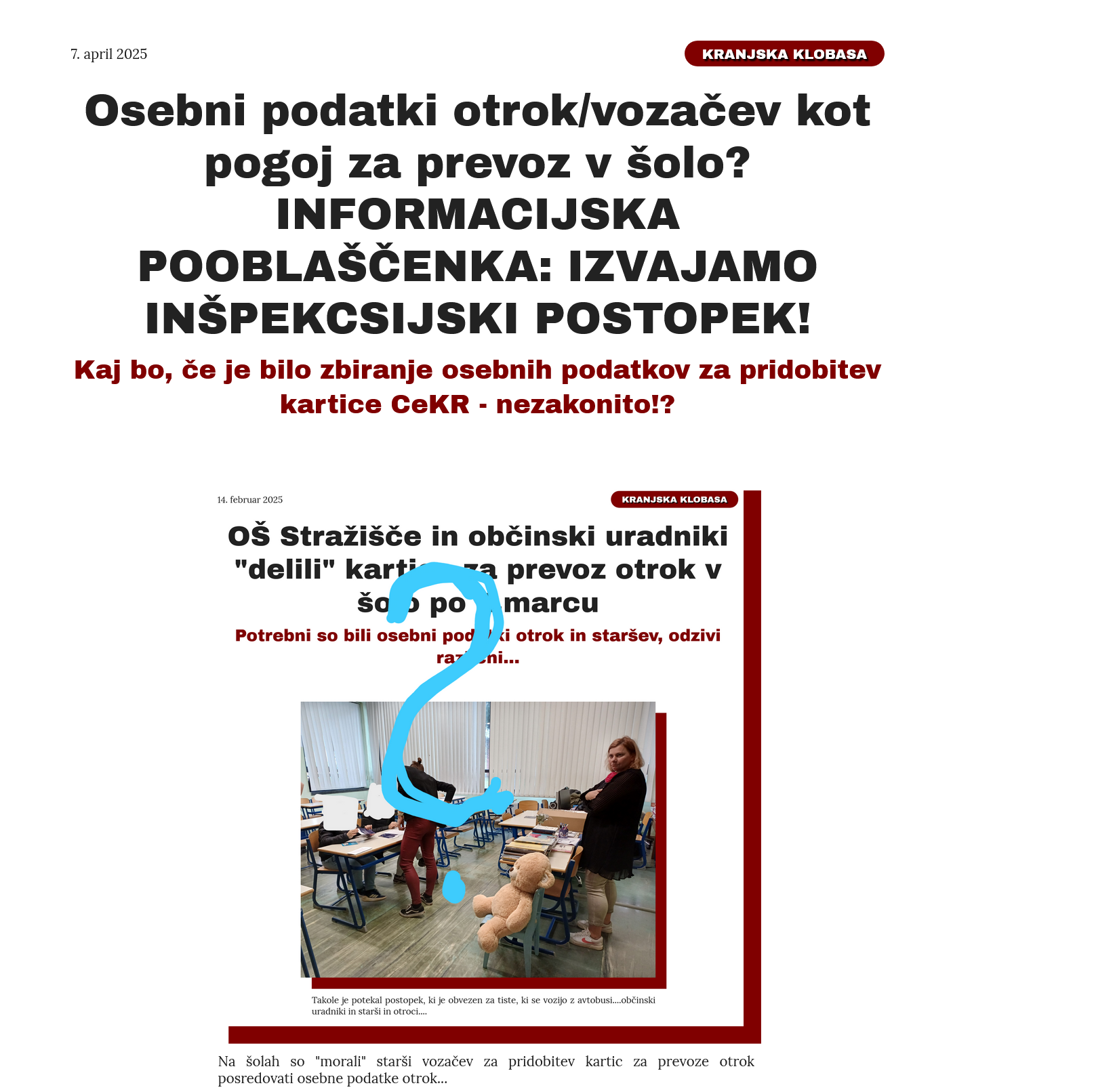 Glede na zapisano, čaka prevoznika kazen v tisočih evrov. Kot nam je zapisala v odgovoru inšpekcija, postopek še ni končan (možna je pritožba), a SEVEDA JASNO IZPOSTAVLJA POČETJE, KI SMO GA SPREMLJALI OD ZAČETKA DO ZDAJ IN JE "POSKUSNA DOBA" TRAJALA DO KONCA LANSKEGA ŠOLSKEGA LETA KAR SE TIČE ŠOLSKIH PREVOZOV.... A TO NI EDINI POSTOPEK V ZVEZI S KARTICO, PREVOZI IN ŠOLSKIMI OTROKI!
