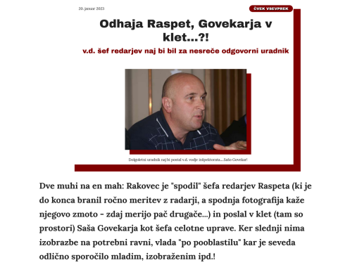 TRMA.SI JE EDINA IN PRVA PISALA O DOGAJANJU NA KRVAVCU IN EDINA ZABELEŽILA IZREDNO PRISTEN IN DOBER ODNOS ŽUPANA KRANJA IN LASTNIKA RTC KRVAVEC....A DOBILI SMO TUDI PODATEK, KDO JE PREJEL IN PREJEMA BREZPLAČNO VOZOVNICO ZA SMUČANJE NA KRVAVCU....KER ŠE PREISKUJEMO NAVEDBE, LAHKO ZAPIŠEMO SAMO TOLE: SUM VELJA ZA ČLOVEKA, KI V TEJ ZGODBI NI OMENJEN.....
