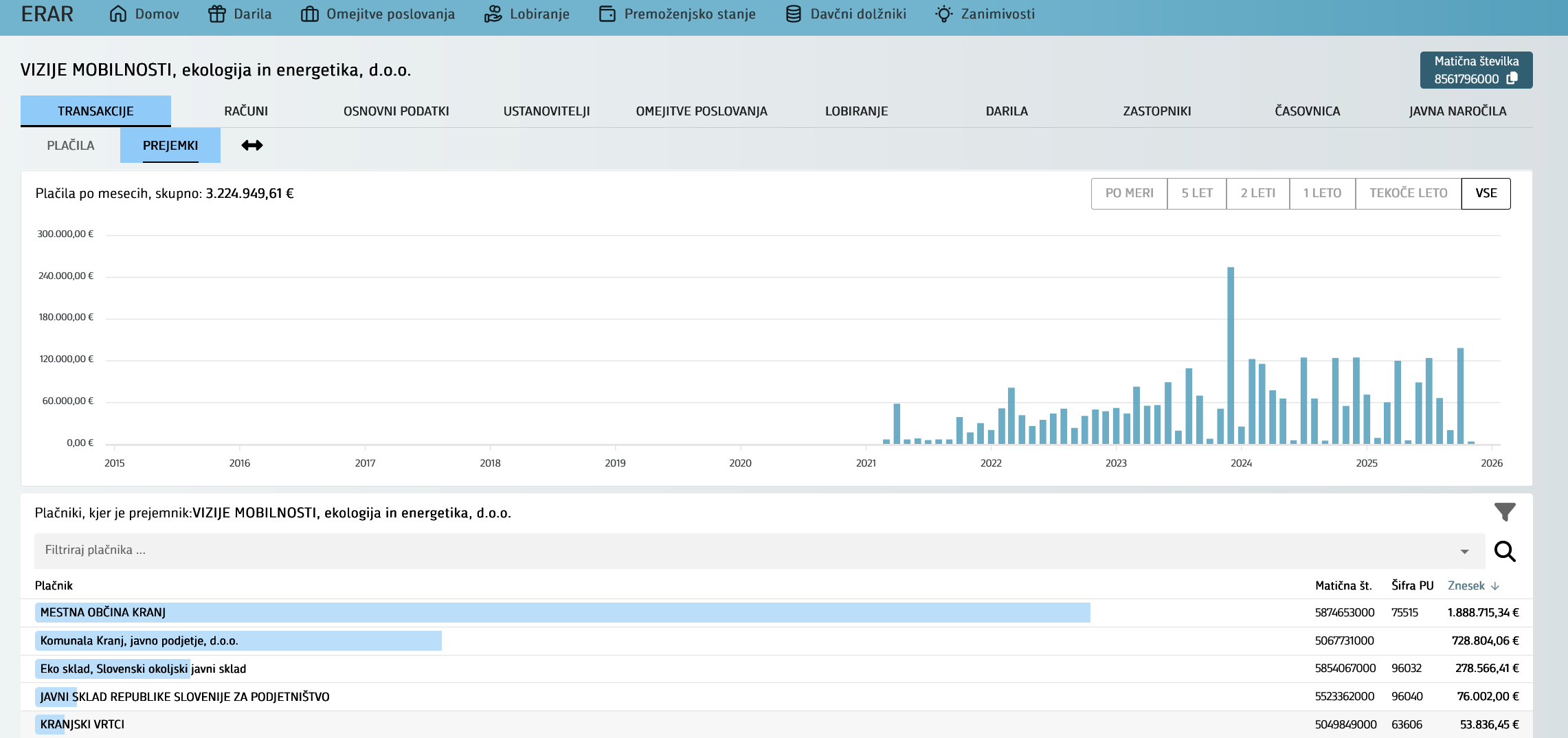 Podjetje Vizija mobilnosi večino prihodkov z javnim denarjem ustvari v MO Kranj....taki so uradni podatki: