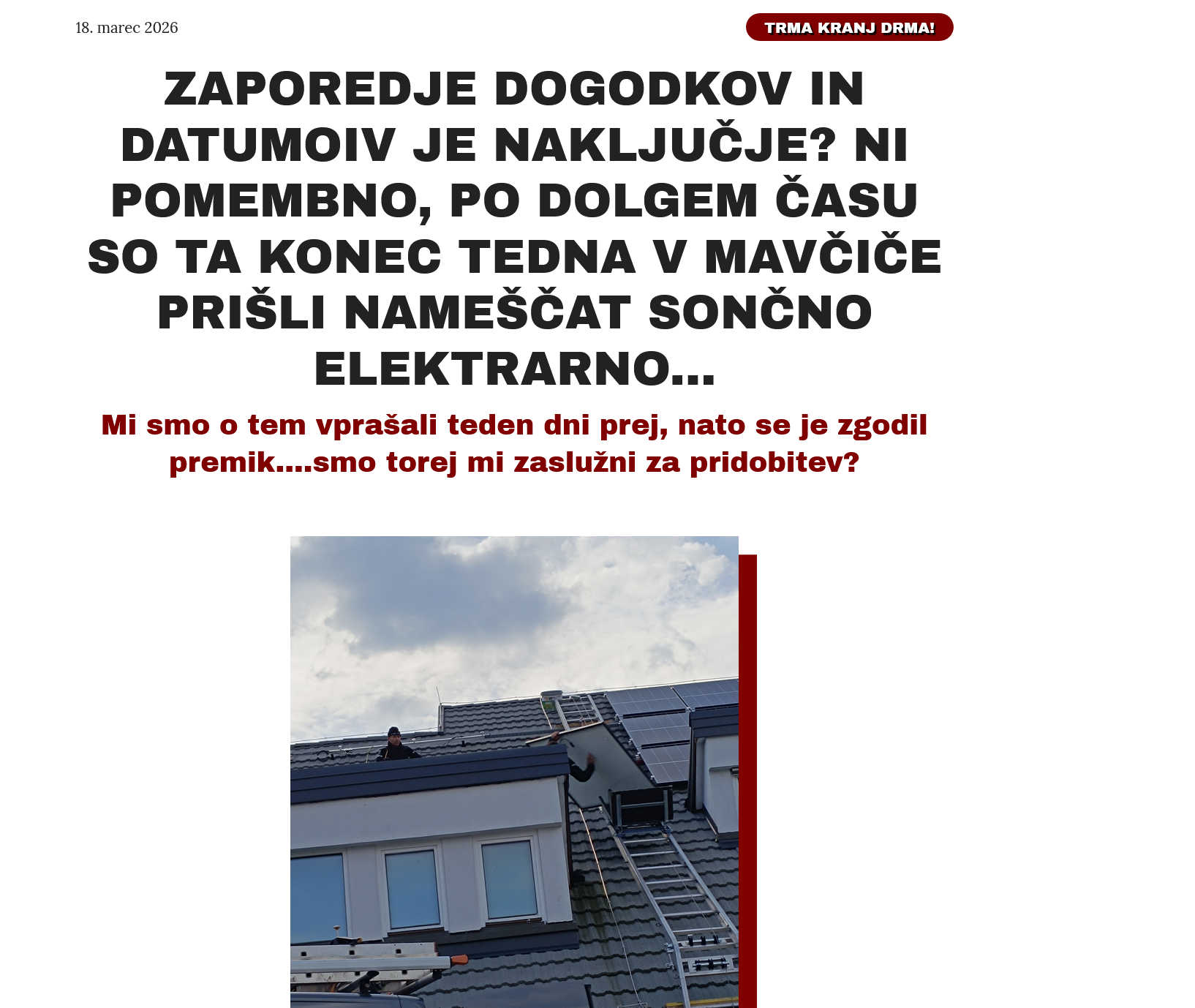Ne trdimo, da je /začeli so delati čez vikend.../ to povezano s Trmo in dejstvi, da smo bili z MOK seznanjeni, da so do zdaj namestili dve sončni elektrarni, ki pa še nista priklopljeni...KDO JE ODGOVOREN, DA SE V OSMIH MESECIH NI ZGODILO VELIKO - A SE JE ZGODIL ANEKS K POGODBI ZAPOL MILIJONA Z DDV!?