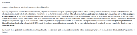 Zakulisje kranjske politike obeta spopad "stražiške naveze": Igorja Velova (Lista za razvoj Kranja) in Zorana Stevanovića (Zoran Za Kranj)! Prizorišče bo klasičen ring, imenovan - javno podjetje Komunala. Kot smo obveščeni, po slovenskih medijih že kroži "anonimka iz omare" oziroma še en poskus, da bi z blatenjem drugih kdo dobil korist. In ta kdo je bolj ali manj znan, če ga opišemo z besedico "naj". Sodišče je vse početje Zorana Stevanovića iz časov lomastenja po Komunali - razveljavilo in izničilo. A zdaj mora mestni svet določiti 4 kandidate za nadzorni odbor komunale, ki ima sicer "folklorni značaj" kot se reče. Lastniki (torej župani občin lastnic) so vzeli stvari v roke že ob napovedanem štrajku in tako je v bistvu to kadrovanje le stvar - prestiža. In zanimivost: Igorja Velova so kot predstavnika Kranja v skupščini Komunale zamenjali po znani zgodbi "počena guma", ki je ni javnosti nikdar pojasnil - Zoran Stevanović pa se je s šlamastiko dejansko zamenjal sam oziroma mu je ugasnila funkcija. Gre torej za vihar v kozarcu vode? Ne, gre za spopad dveh politikov, ki imata SKUPNEGA POLITIČNEGA NASPROTNIKA ŽUPANA in obenem tudi SKUPNEGA POLITIČNEGA PRIJATELJA BIVŠEGA ŽUPANA! Zanimivo bo opazovati spopad, ker slovenski mediji že dobivajo pošto o tem, kakšen je Velov ipd. itd. Dolgčas nam v Kranju ni, mi pa ponižno in pohlevno čakamo na pojasnilo Zorana Stevanovića po uničujoči sodbi o njegovem početju v Komunali Kranj.....Za popestritev pa še ena domislica iz časov, ko sta Igor in Zoran ob sekundiranju Barbare in Boštjana "urejala" zadeve v Kranju....
