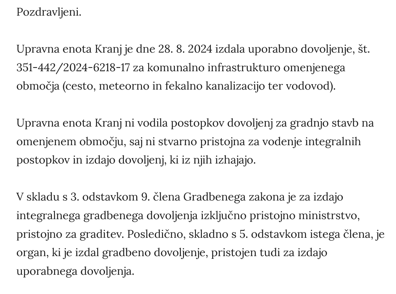 MI NIČESAR NE TRDIMO, NITI NAMIGUJEMO, NITI OBTOŽUJEMO - POSTAVLJAMO LE VPRAŠANJA. TAKOLE JE DOVOLJENJIH ZA SOSESKO IPD. ODGOVORILA UPRAVNA ENOTA KRANJ: