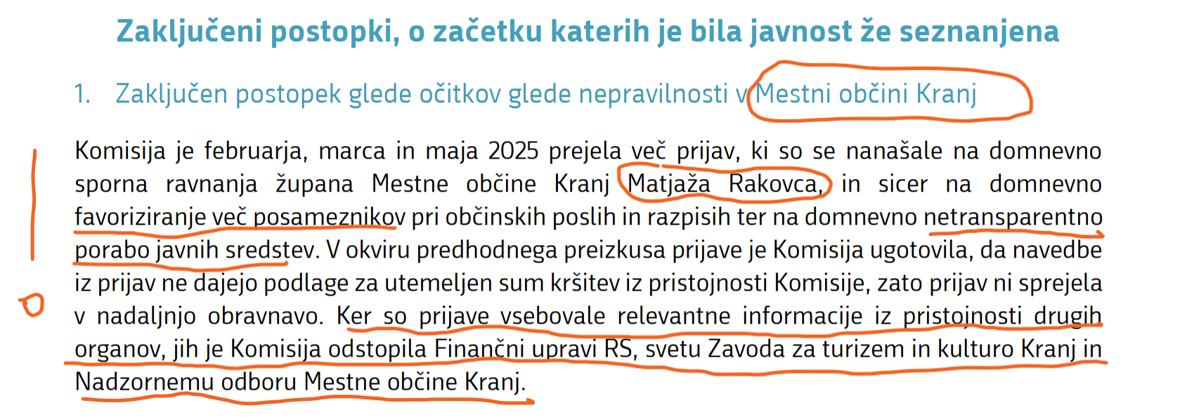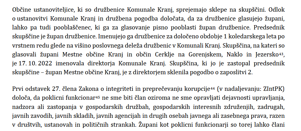 A to še ni vse....Računsko sodišče je ob pregledu Komunale Kranj opozorilo na dejstvo, da je bil Matjaž Berčon ponovno imenovan za direktorja kar leto prej, preden mu je potekel mandat kar je lahko - koruptivno dejanje glavnega odgovornega Matjaža Rakovca kot predsednika skupščine?