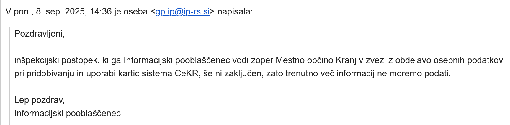 Opala: zdaj se z domnevnimi spornimi početji ukvarjata nadzorna organa občine (?) in zavoda za turizem(?). Če se...vodita ju Slavko Erzar /Svoboda/ in Iztok Jenko /SDS/. Kaj je vzel pod drobnogled FURS, ne vemo - vemo pa, da še vedno traja inšpekcijski postopek glede podatkov, ki so jih o sebi in otrocih morali dajati MO Kranj starši otrok-vozačev, da so pridobili možnost prevozov v šolo s CEKR kartico! Postopek traja mesece in mesece....