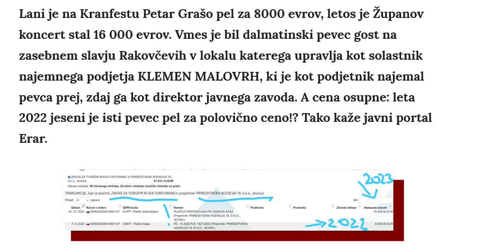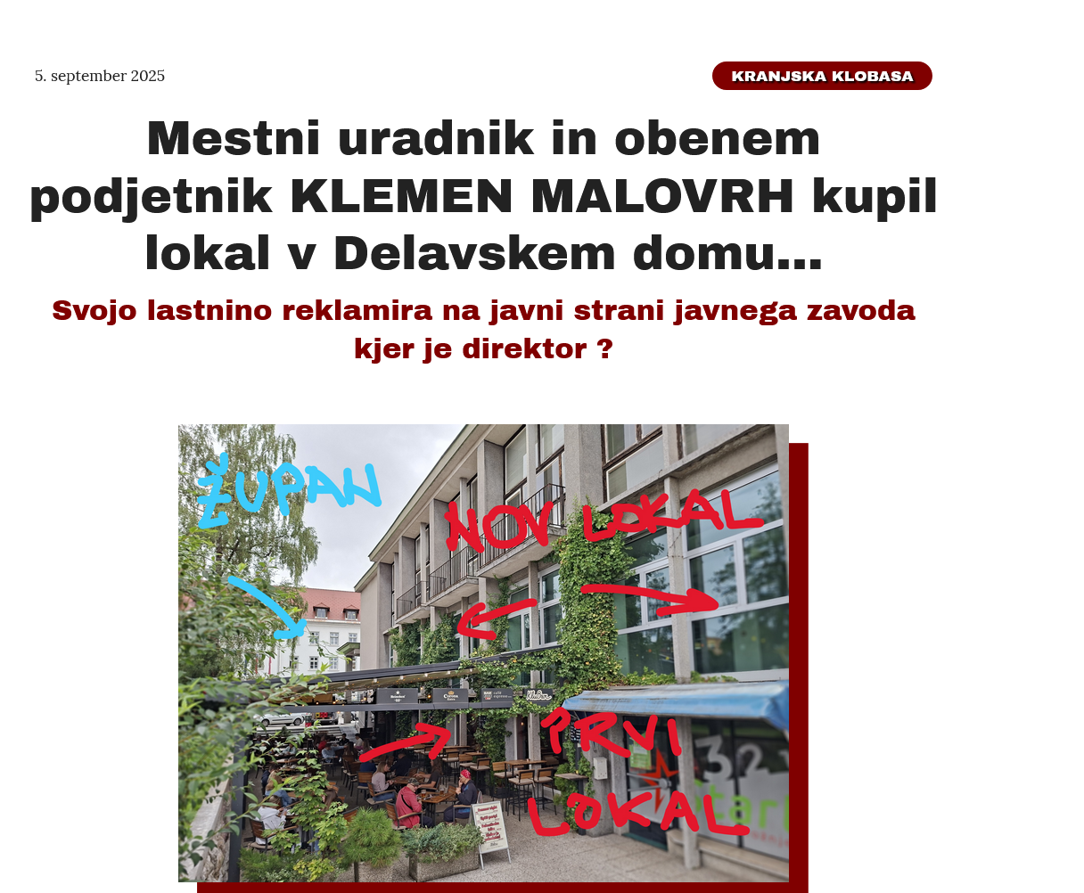 Ker Klemen Malovrh v istem ("svojem") lokalu tik ob občinski stavbi gosti tudi "žur" župana Kranja in njegove soproge....
