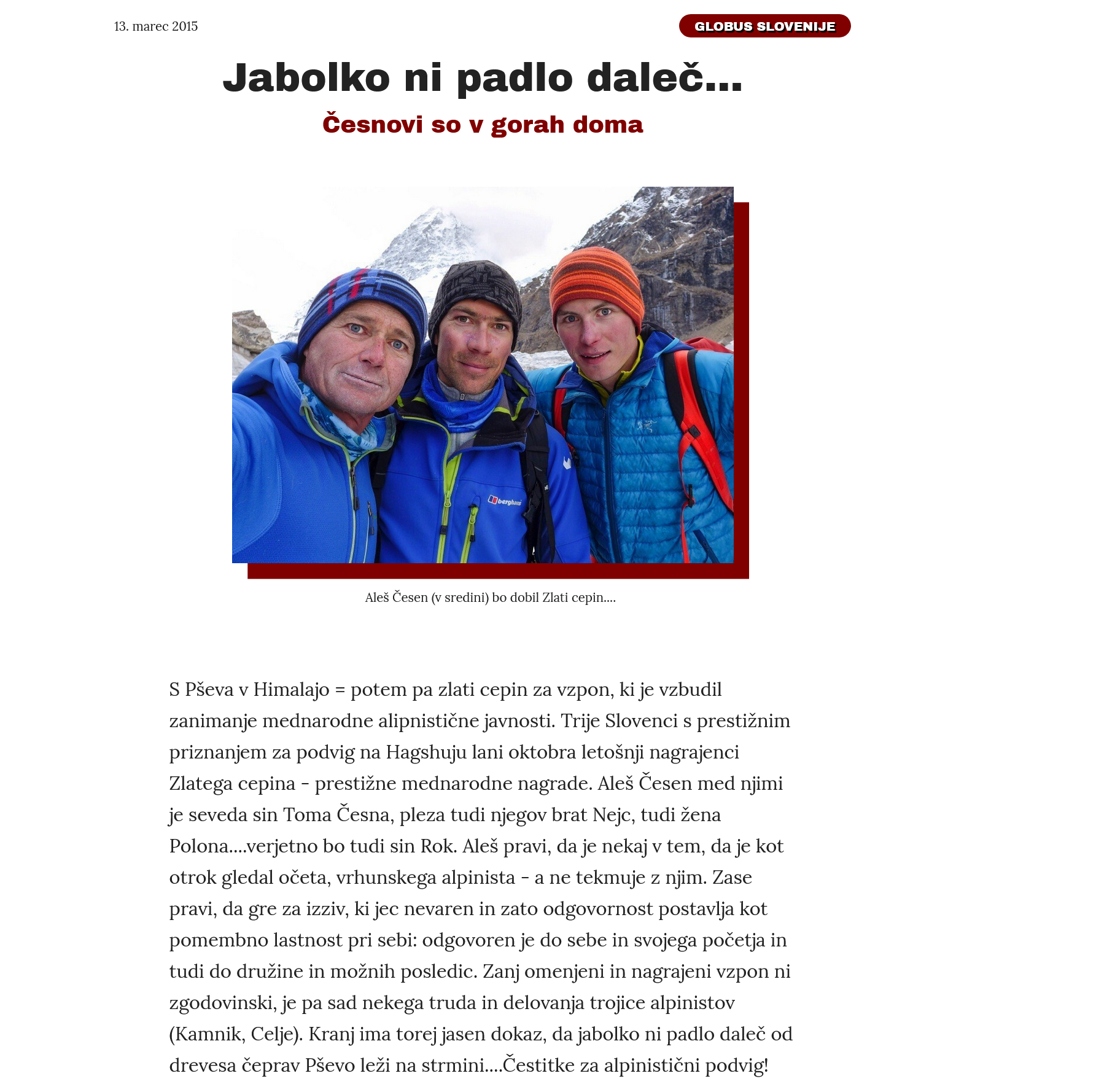 *Aleš Česen je z dosežki proslavil Slovenijo, Kranj, kranjski alpinizem