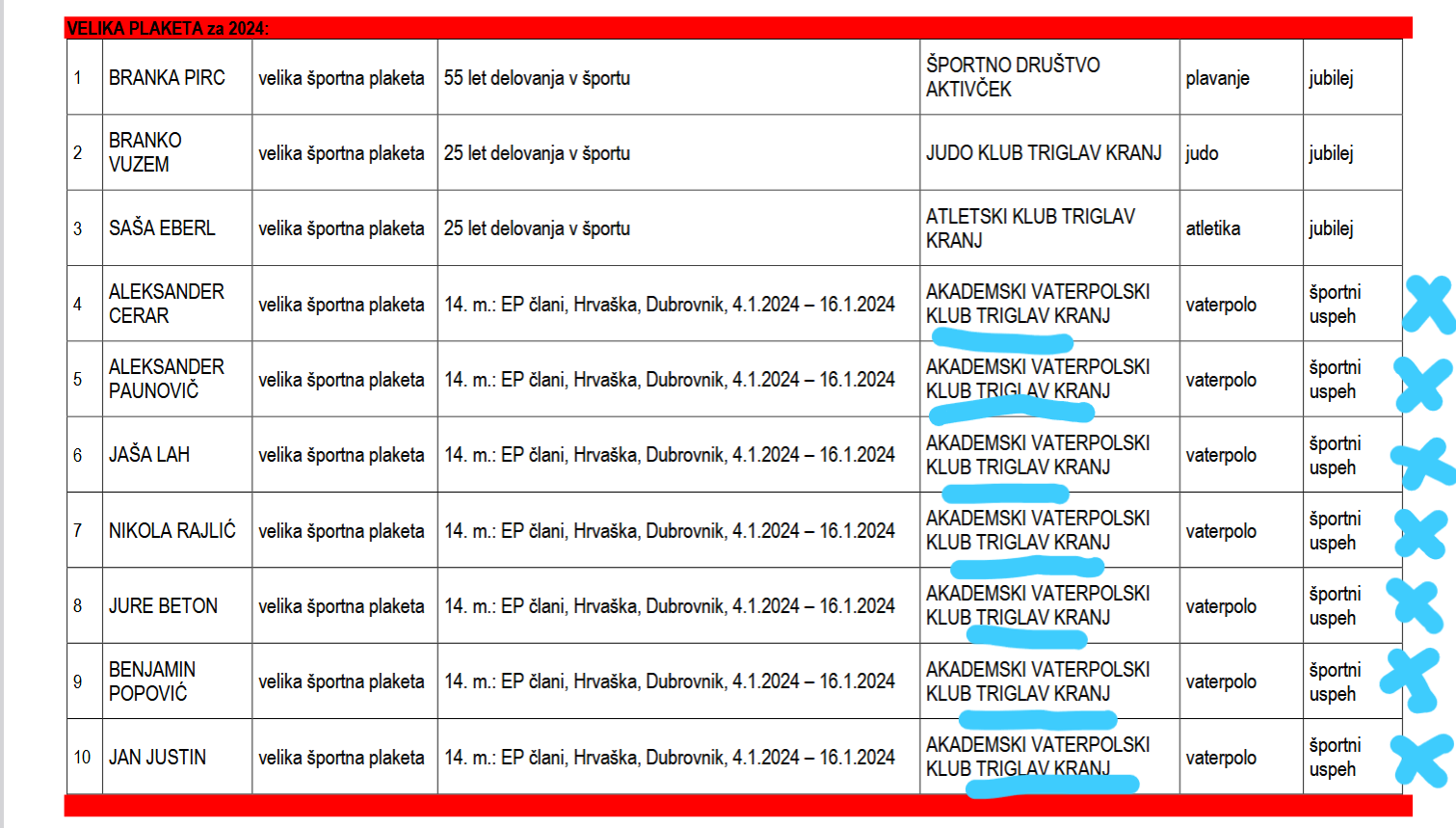 Lani je velike športne plakete osvojilo največ - vaterpolistov. Ker so pač tekmovali na evropskem prvenstvu in tam zasedli sam rep lestvice. Pa kaj! Taki so kriteriji in pravila in ...kdo jim pa kaj more?