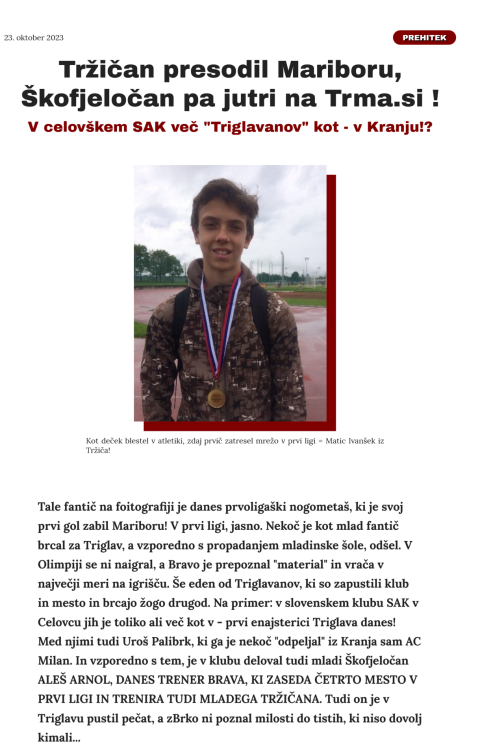 David Zec je kranjski nogometaš, ki bo danes držal pesti za svoj Triglav