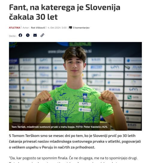 Tom Teršek, svetovni mladinski prvak v metu kopja, o selitvi na univerzo v ZDA