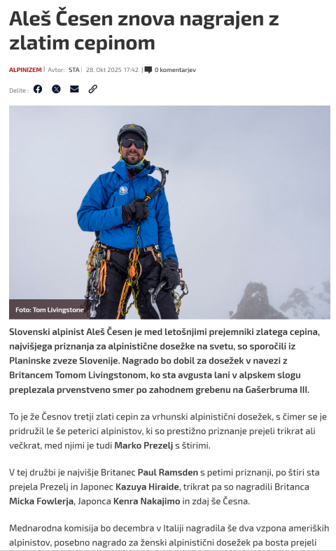 Kranjski alpinist je na vrhovih in v svetovnem vrhu....