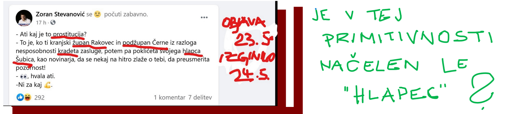 A Kranj mora biti ponosen: IMAMO DVA PREDSEDNIKA DVEH ZVEZ, KI ZDRUŽUJETA DVA ŠPORTA! RES JE, DA BOLJ MNOŽIČNE IPD. ŠPORTE PONAVADI ZASEDAJO POLITIKI "PRVE LIGE", A NI PROBLEMA: TUDI DRUGI POLITIKI SE SILNO RADI POSEDAJO NA STOLČKE V ŠPORTU....Kot smo pa že zapisali: težko bi našli politika, ki je bolj primitivno javno blatil Matjaža Rakovca kot Zoran Stevanović... pa kaj bi tisto, interesi zbrišejo vse! Verjetno pa je rodovom kranjskih vaterpolistov tudi v čast, da je njihov klub predlagal za vodenje zveze društev tako pomembno politično ime....