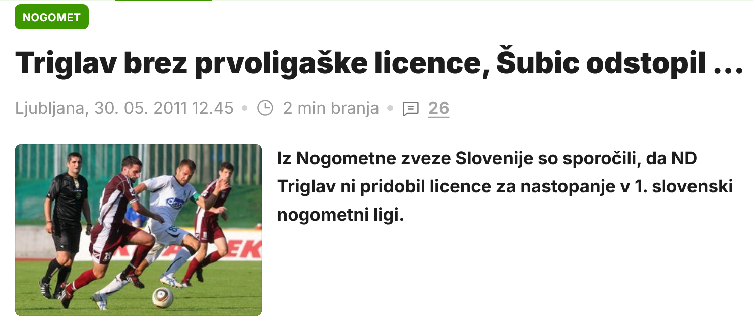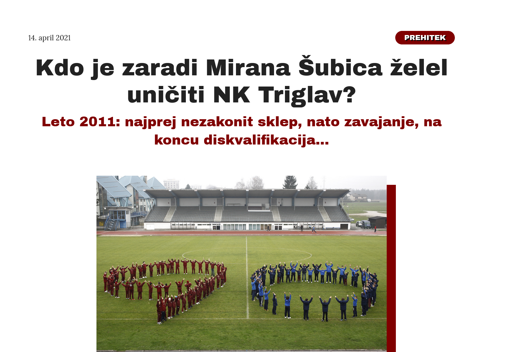 Vsak človek si v zavest in podzavest vtisne kaj, kar mu ostane vse življenje. Pri meni je eden takih dogodkov zgoba iz 2011, ko je mojemu klubu Triglavu Nogometna zveza Slovenije (vodil jo je Alaeksander Čeferin...) skušala na nepravilen način odvzeti licenco in nas pahniti v drugo ligo. Izhodišča: