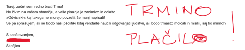NIZKOTNOST, DA SE ME POLITIČARKA NA OSEBNI RAVNI LOTI Z LAŽMI, KER NE MORE UGOVARJATI DOKUMENTOM O NJENEM POČETJU, JE DEL SLOVENSKE DRUŽBE IN DRŽAVE. ZATO OD 5.7. 2023 /KOT TUDI ŽE NAJAVLJENO/ VSE ODZIVE TRMI SPOROČAJTE NA NAŠ SPLETNI NASLOV. ANONIMNI PLJUVALCI BODO SEVEDA SVOJE DELO OPRAVLJALI DRUGOD KOT TALE PRIMER...SPECIALNA VOJNA JE NAMREČ DOBILA SOFISTICIRANE OBLIKE: NEKDO /IZMIŠLJENI TROL TE ALI ONE INTERESNE, POLITIČNE SKUPINE/ JE "PONAREDIL" CELOTNO STRAN TRME....ČE JE RESNIČEN, NAJ SE NAM OGLASI!
