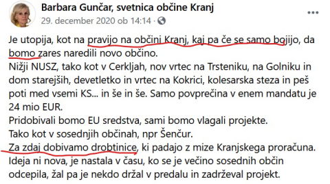 Na fotografiji, ki je bila takrat del promotivne dejavnosti Brabare Gunčar kot mestne svetnice Kranja, so svetnice in svetniki s tega območja, ki naj bi delali v korist krajev kjer živijo! Kaj pa zdaj? Iztok jenko iz SDS na naša vprašanja ni odgovoril, za LMŠ je odgovoril svetnik oziroma podžupan Nograšek, Milan Glamočanin (Lista za razvoj Kranja) pa tudi ni odgovoril: bodo sledili Barbari Gunčar in novi občini ali - ostali zvesti Kranju? MIMOGREDE: SVETNICA GUNČARJEVA KLJUB JASNO IZRAŽENI VOLJI ODCEPITI DEL KRANJA OD SEDANJE MESTNE OBČINE ŽE DEVETI DAN NI ODSTOPILA KOT MESTNA SVETNICA KAR BI BILO EDINO POŠTENO. NE, ŠE VEDNO SKUŠA KRANJ "RUŠITI" OD ZNOTRAJ KOT PRIPADNICA POLITIČNE OBLASTI IN ODLOČEVALKA! POLITIČNA HIGIENA IN MORALA?