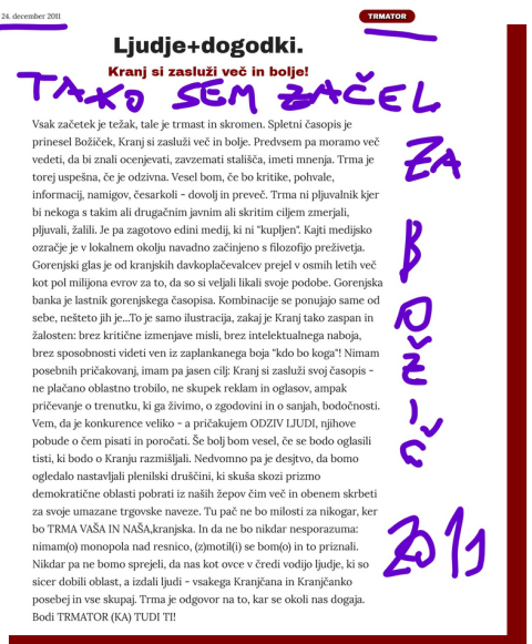 Jure Grilc mi je prisodil primitivno obnašanje - tega ne komentiram, ker ima vsak bralec/bralka Trme pravico do mnenja.Torej, dragi Jure, hvala za vaš pripis...Potem pa se je obglasil MILAN VASILJEVIĆ. Nekoč je kot kranjski gostinec dobesedno moledoval za podporo, kakšno objavo ipd. na - Trma.si. Če je bil ali ko je bil dogodek tega vreden, smo kajpak objavili...