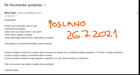 Ne odnehamo, a na Brdu nam kopij računov ne bodo dali...Takle je odgovor o najemu Vile Zlatorog v prejšnjem tednu, ko je po naših podatkih tam bivala razširjena družina predsednika vlade Janše. TEGA NISO POTRDILI, NITI ZANIKALI....a ne dajo (s skritimi osebnimi podatki) računov, ki bi pokazali, KOLIKO JE ZASEBNI NAJEMNIK DEJANSKO PLAČAL! KAR POMENI, DA SKRIVAJO PODATKE....OZIROMA SLEDNJI NISO DOSTOPNI JAVNOSTI!