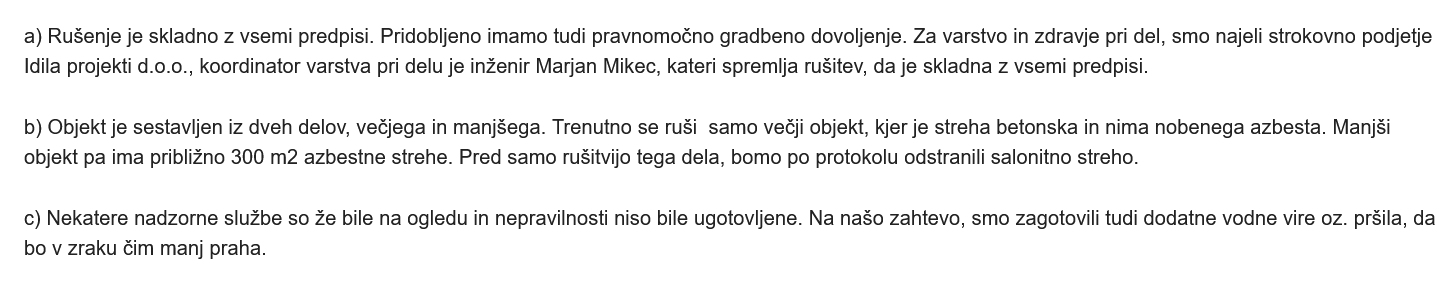 Gradbeni poseg kot je rušenje vedno vzbudi pozornost in seveda odziv sosedov. Tako smo včeraj zapisali, da ob rušenju samskega doma v Stražišču ne manjka vprašanj. VEDNO BI SI ŽELILI, DA NAM KDO TAKO HITRO ODGOVORI KOT SO TO STORILI GRADITELJI NOVEGA OBJEKTA! Preberite pojasnila!