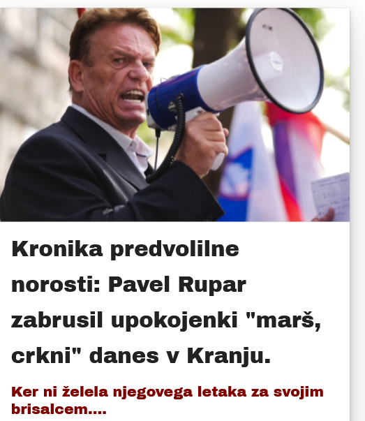 Vesel sem, ker bom končno veliko več z Bebo, z vnuki.. Ker bom zopet skrbel zase in ne za druge nehvaležne.. Ponosen na svoje poslanstvo vam vzklikam: OSTANITE ZDRAVI, NAJ ŽIVI SLOVENIJA! Nekoč je obstajal Rupar..