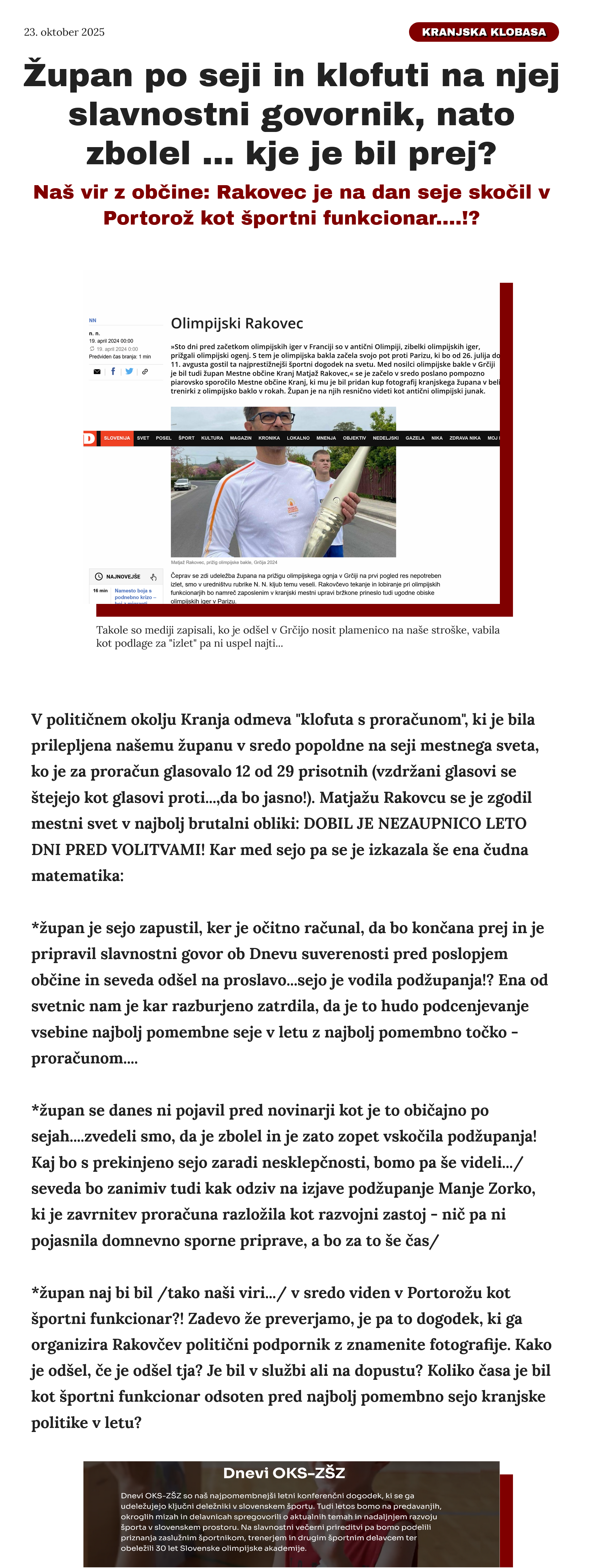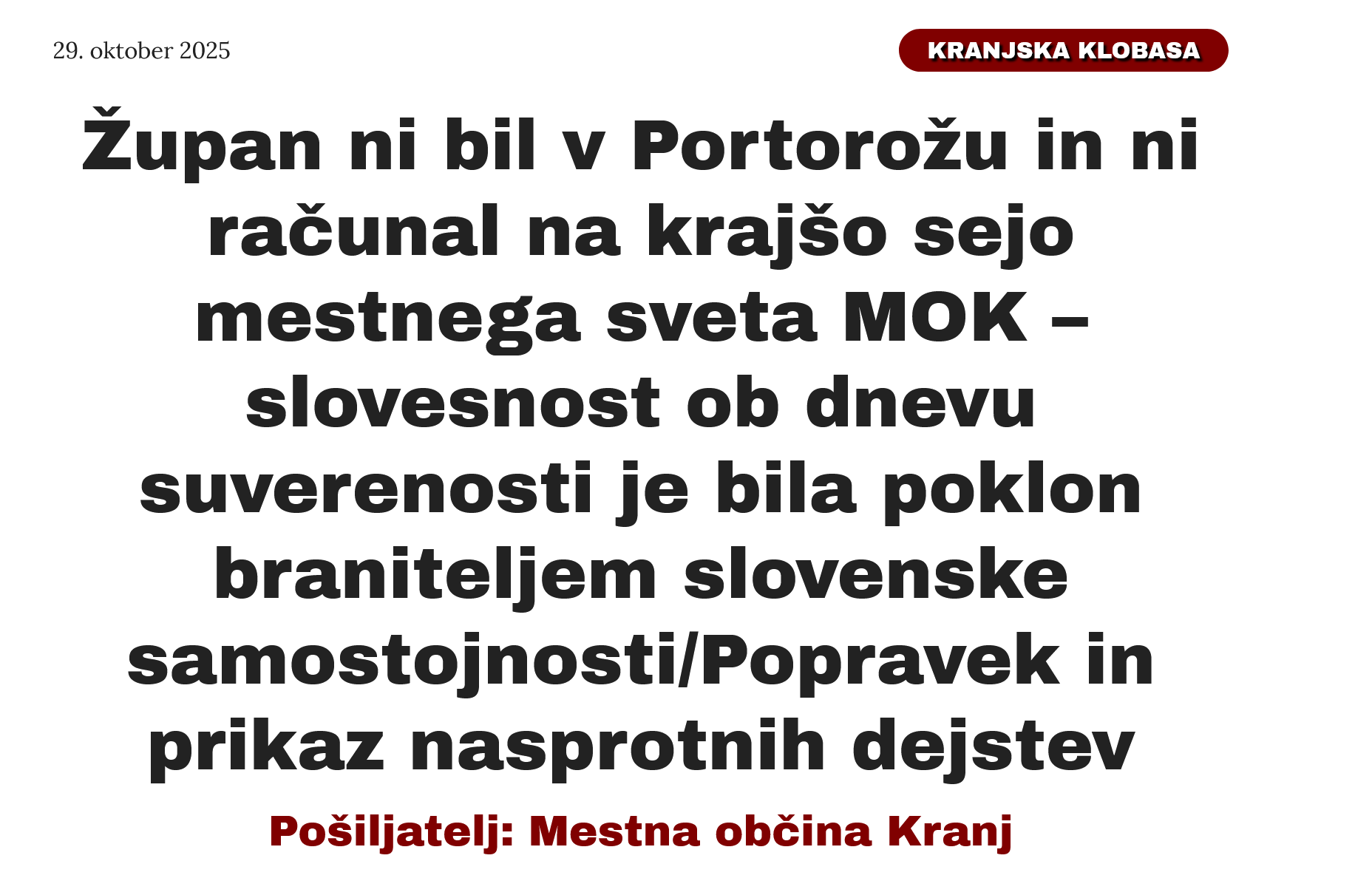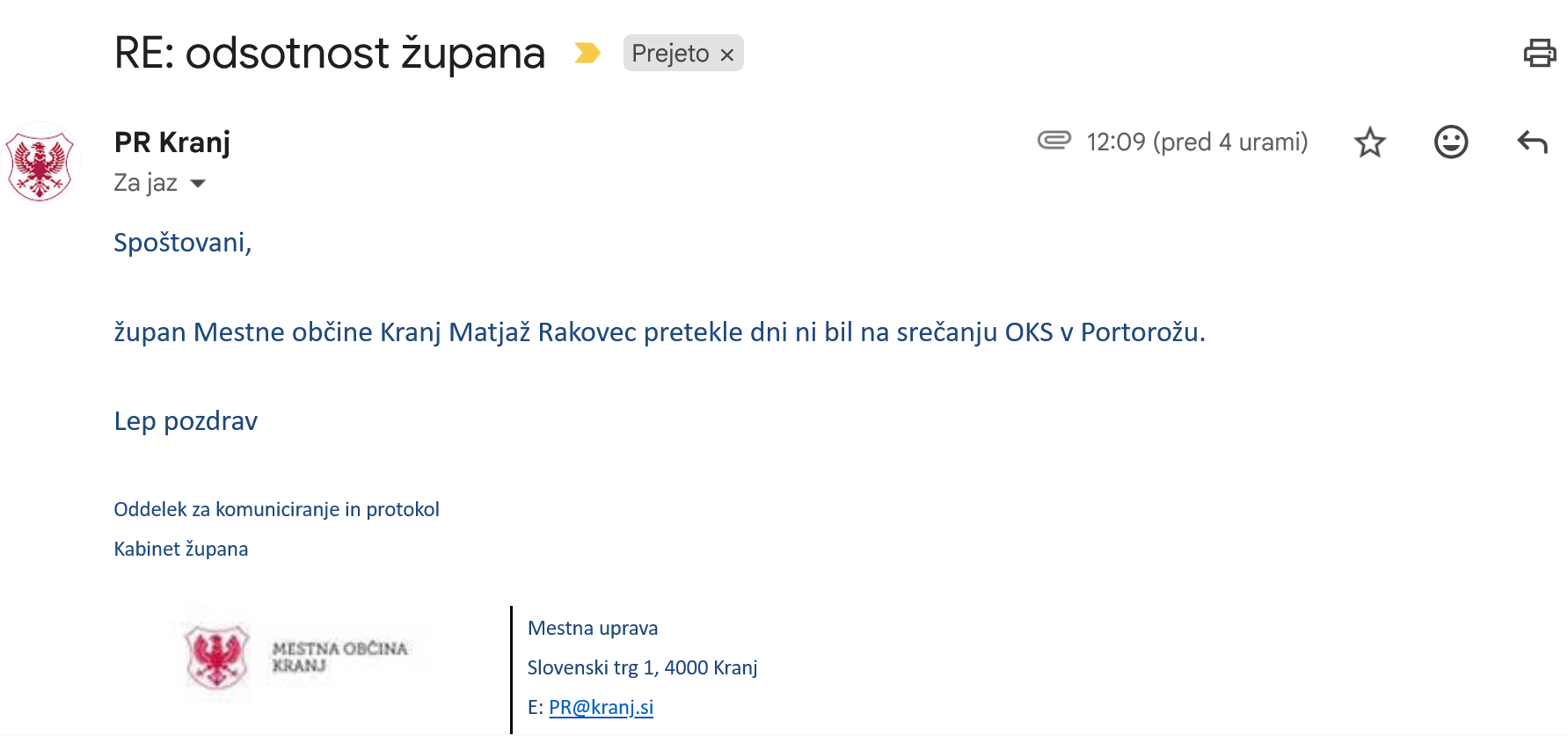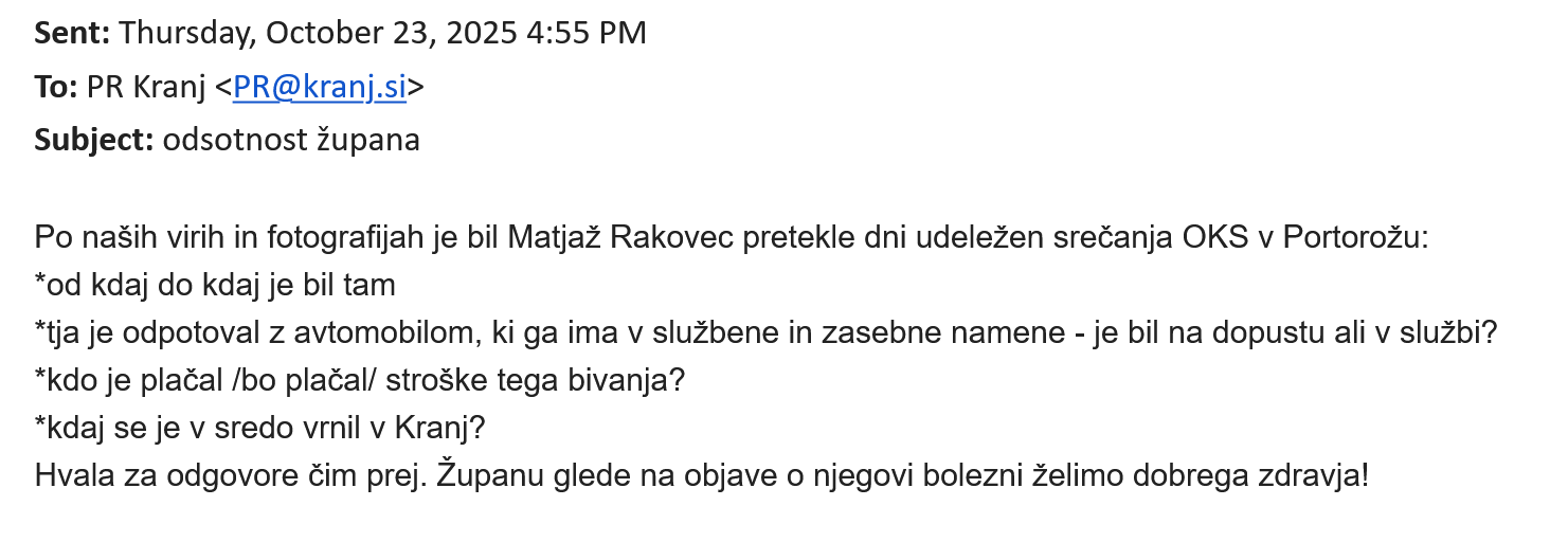 23.10. vprašanja MO Kranj o domnevni odsotnosti župana