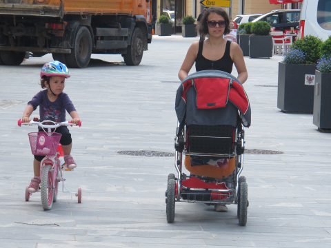 Najlepši majski prizor, ki ga je mogoče najti v Kranju - vozički, otroci, mamice, sonce in maj. Središče je lepše, Kranj pa ima upanje. Maj je mesec mladosti...